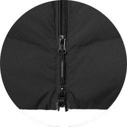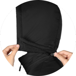 - Three-piece quilted detachable hood features a full coverage of wind protection whenever needed.