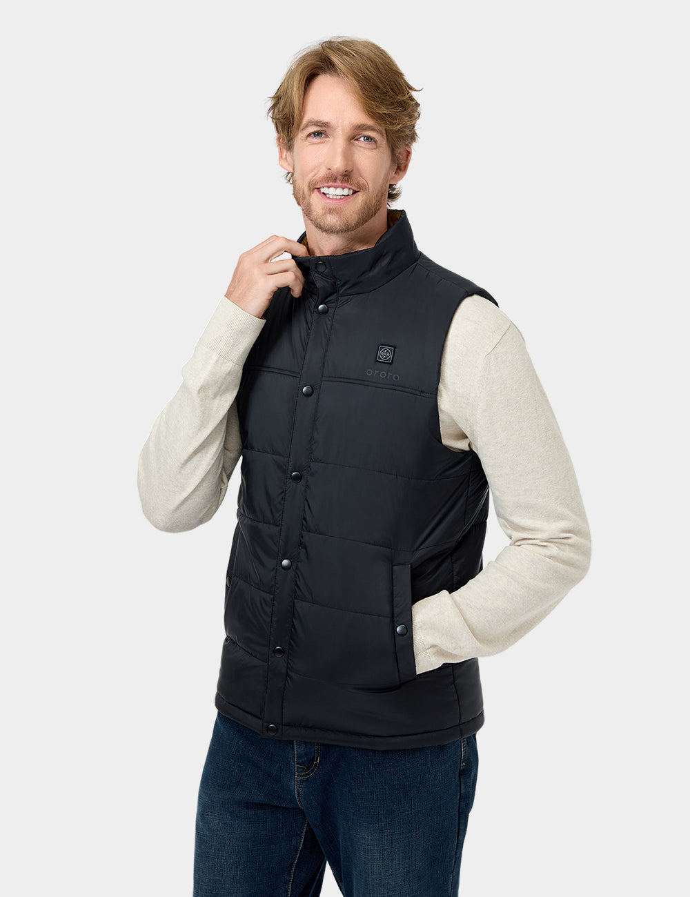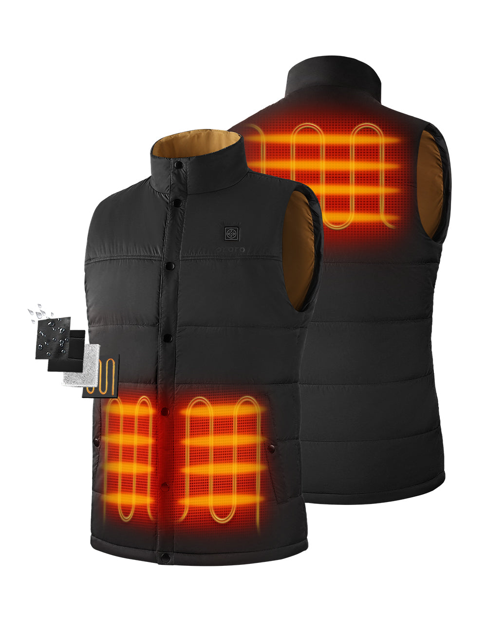 - Vier Heizzonen: linke und rechte Taschen, oberer Rücken